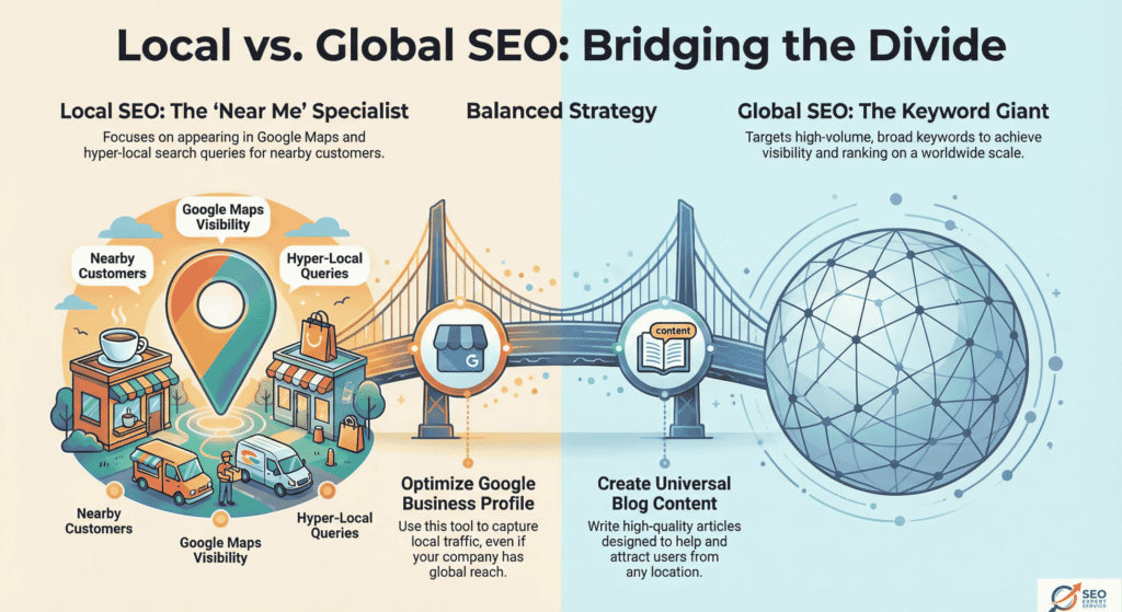 7. Global Reach vs. Local SEO Focus